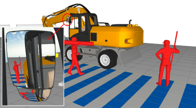 Die Echtzeit Spiegelsimulation unterstützt die Auswahl und optimale Positionierung von Spiegeln am Fahrzeug. Die subjektive Sichtwahrnehmung des Fahrzeugführers kann so mit den normativen Anforderungen an Spiegelsichtfelder in Übereinstimmung gebracht werden.