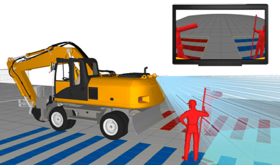 Die Echtzeit Kamera-Monitor-Simulation unterstützt die Auswahl und optimale Positionierung von Kameras und Monitoren am bzw. im Fahrzeug.